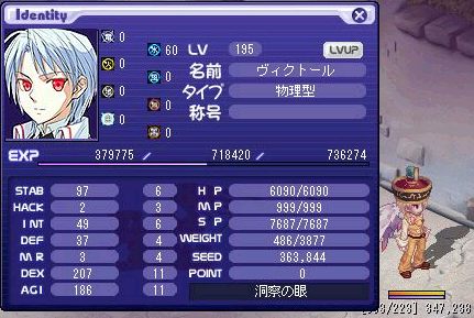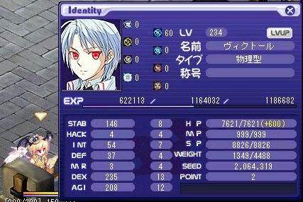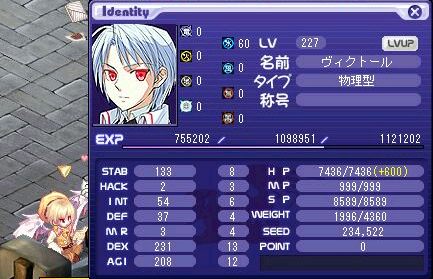 ようやく234です。このステ+敏捷16でマルチとピアシングが陣消えるみたいですね