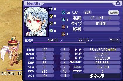 能力 I をUPP 6 (Lv187)まで上げ
