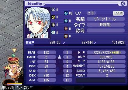 Lvを 216 まで上げ