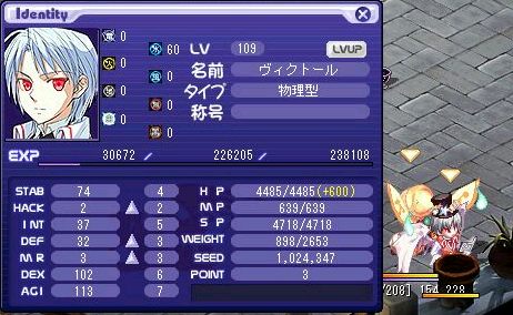 LV:240 STAB 1 HACK 2 INT 125 DEF 32 MR 161 DEX 220 AGI 192