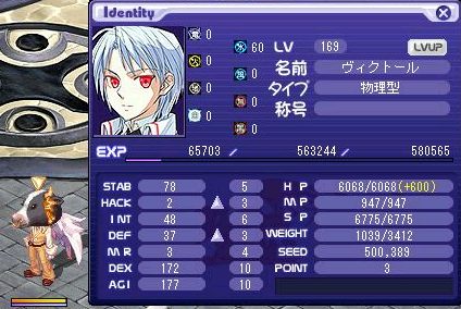 LV:240 STAB 1 HACK 2 INT 100 DEF 32 MR 183 DEX 220 AGI 192