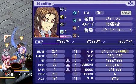 雑魚マップが意外に経験がうまい(1@1kちょっと)ので5mほど狩ったけど