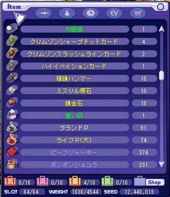 このあとクリムやら魔石やら格安で露店に出してseed確保+インクリ購入+素材購入しまして